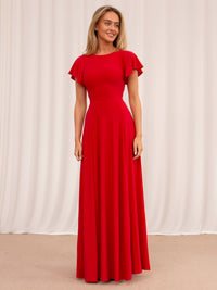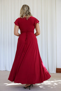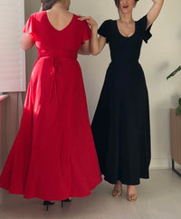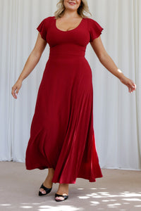 An exquisite maxi dress with flutter sleeves, a floaty skirt, and a corset-style lace-up waist for an adjustable fit. Ava promises an elegant, princess-like look. The double-layered fabric ensures complete protection from sheerness. Enjoy the perfect fit and superior comfort with this timeless piece.