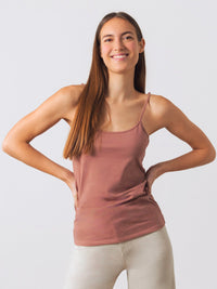 This essential cami is made from our soft, stretchy jersey for a second-skin feel. Designed with delicate straps and a sleek, fitted silhouette, it’s perfect for layering or wearing solo. Now available in a Black & Puce (a dusty rose).